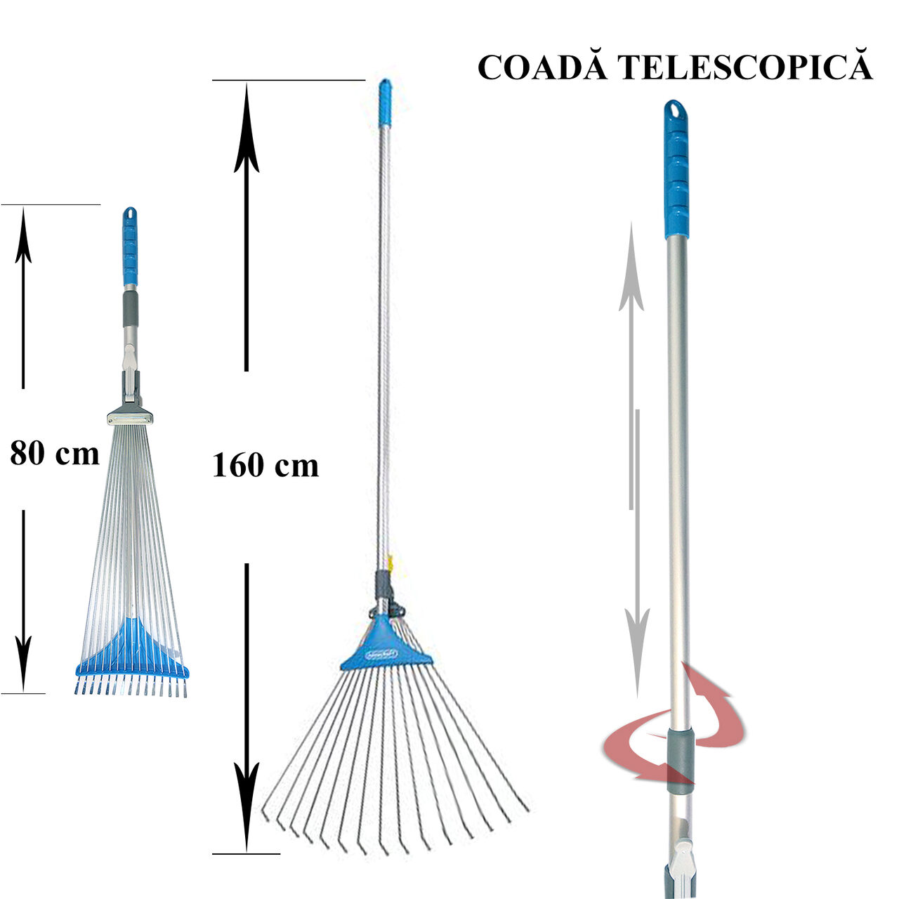 Aquacraft, Fém gereblye, 15 foggal, 160 cm-es teleszkópos nyéllel