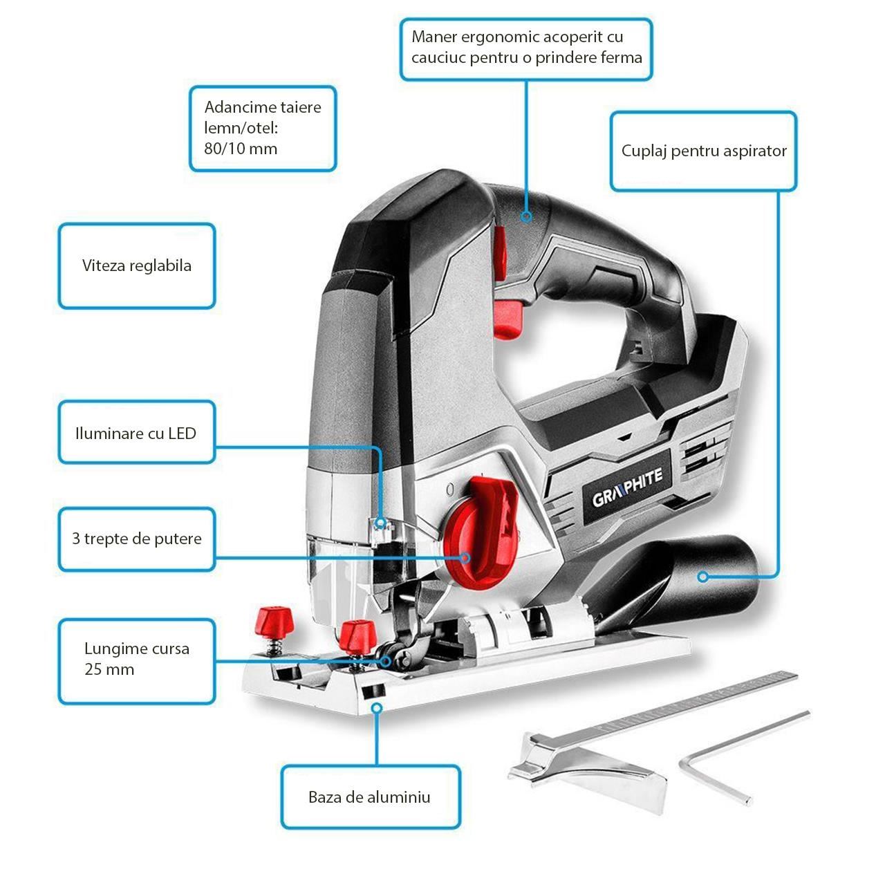 Fa és fém gyors és precíz vágására tervezték, maximális vastagsága 80 mm, illetve 10 mm.