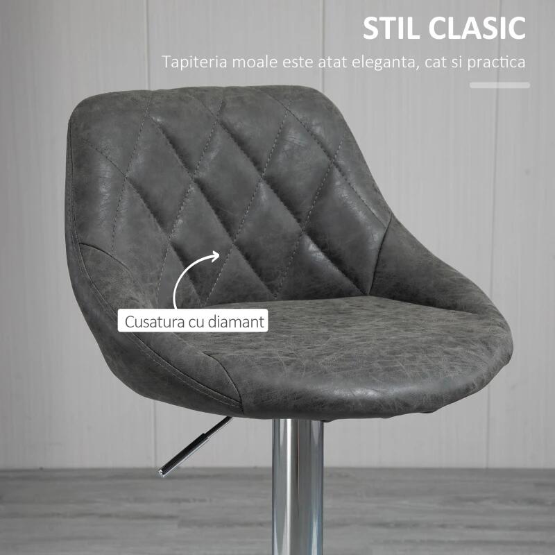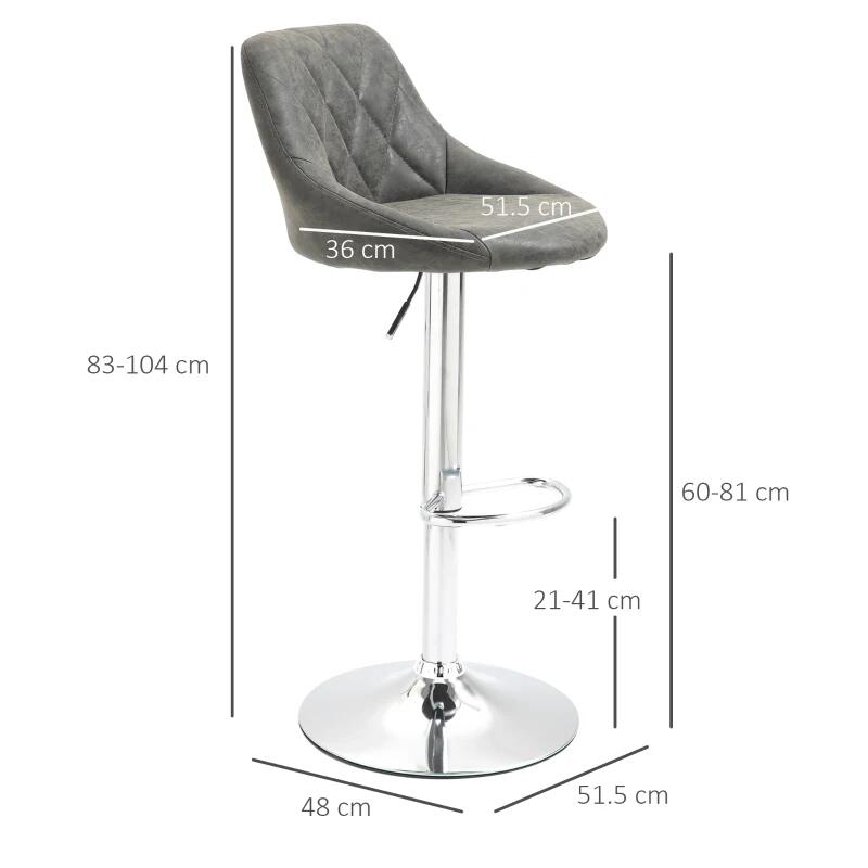 2db konyha/bárszék szett, Marion, forgó, PU bőr, szürke és ezüst, 51,5x48x83-104 cm