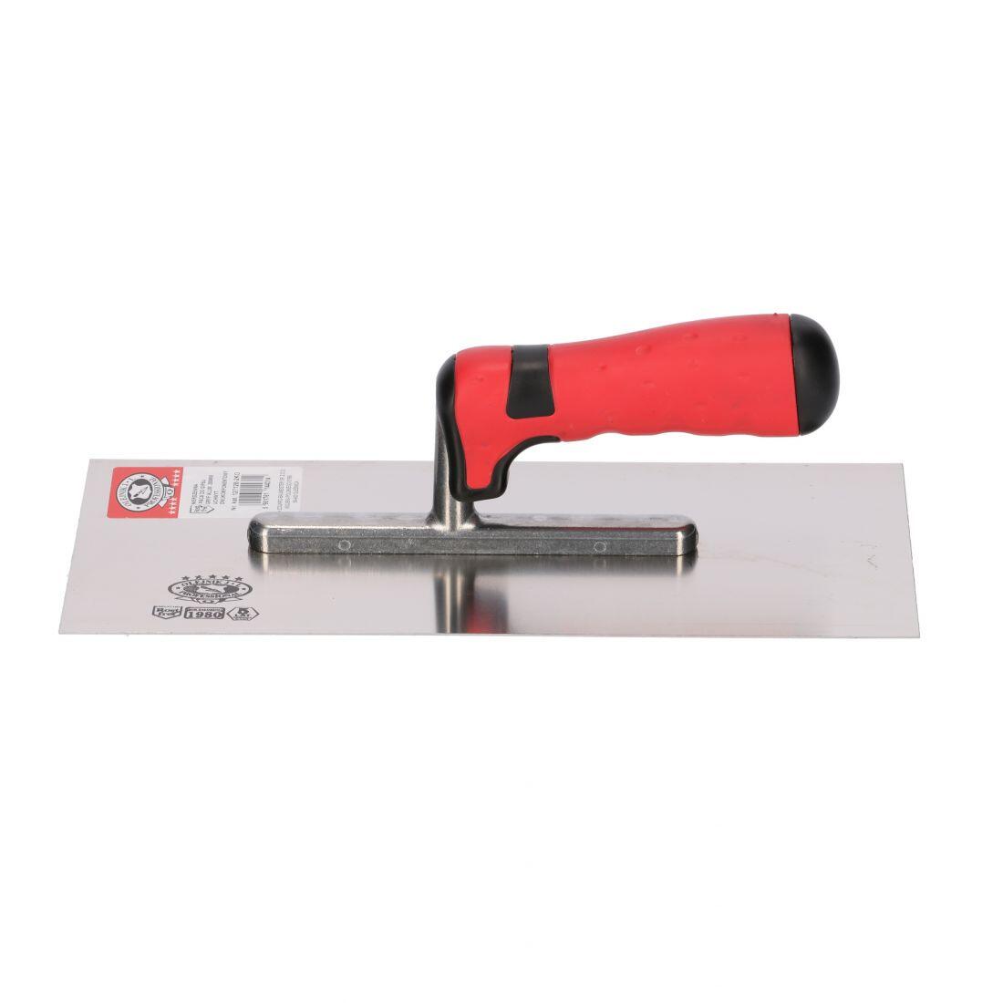 Rozsdamentes acél simító, Olejnik, 13x28 cm, 0,7 mm, puha nyél, piros