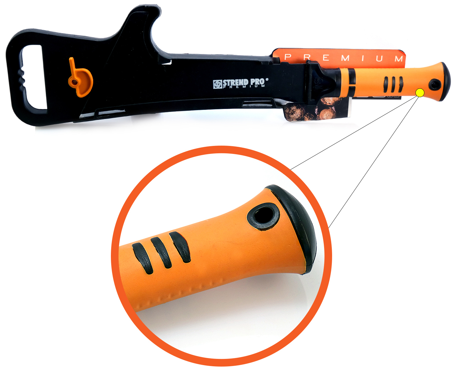 - Ergonomikus kialakítású üvegszálas fogantyú,   csúszásmentes gumi anyaggal bevonva; elnyeli a használat okozta ütéseket.