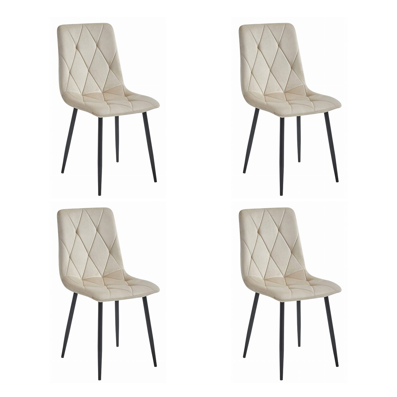 4db konyha/nappali szék szett, Artool, Libra, bársony, fém, bézs és fekete, 44x40x88,5 cm Jellemzők: Kényelmet biztosító puha, steppelt ülés jellemzi. Kárpit a...