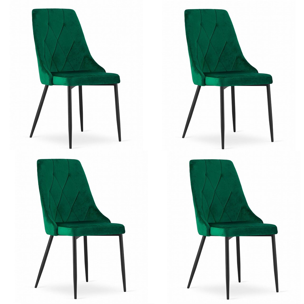4 db-os skandináv stílusú szék készlet, Artool, Imola, bársony, fém, zöld, 48,5x61x93,5 cm Jellemzők: Puha, steppelt ülőke jellemzi őket, amely biztosítja a kényelmet. Kárpitos d...