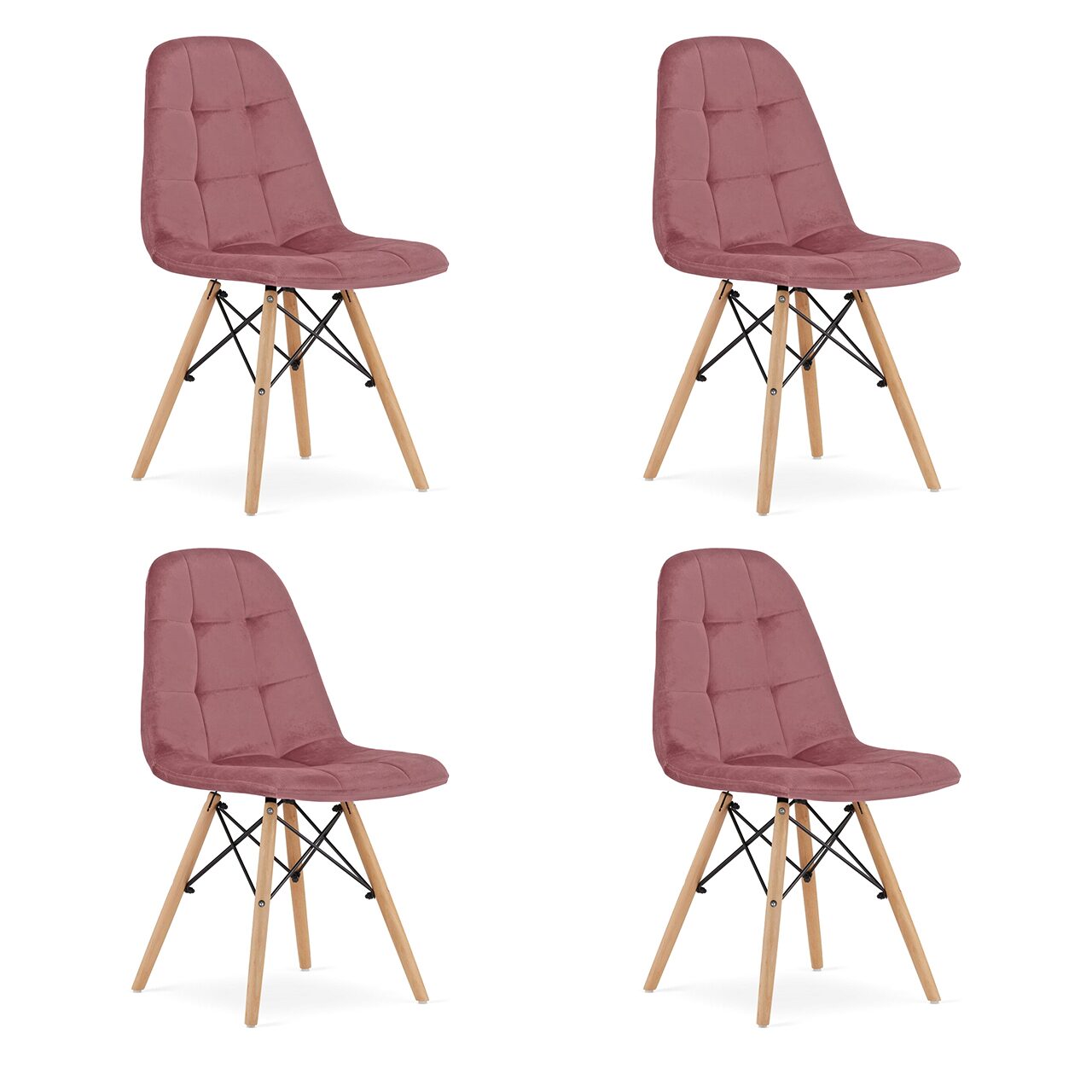 4db skandináv stílusú székkészlet, Artool, Dumo, bársony, fa, sötét rózsaszín, 45x53x84 cm