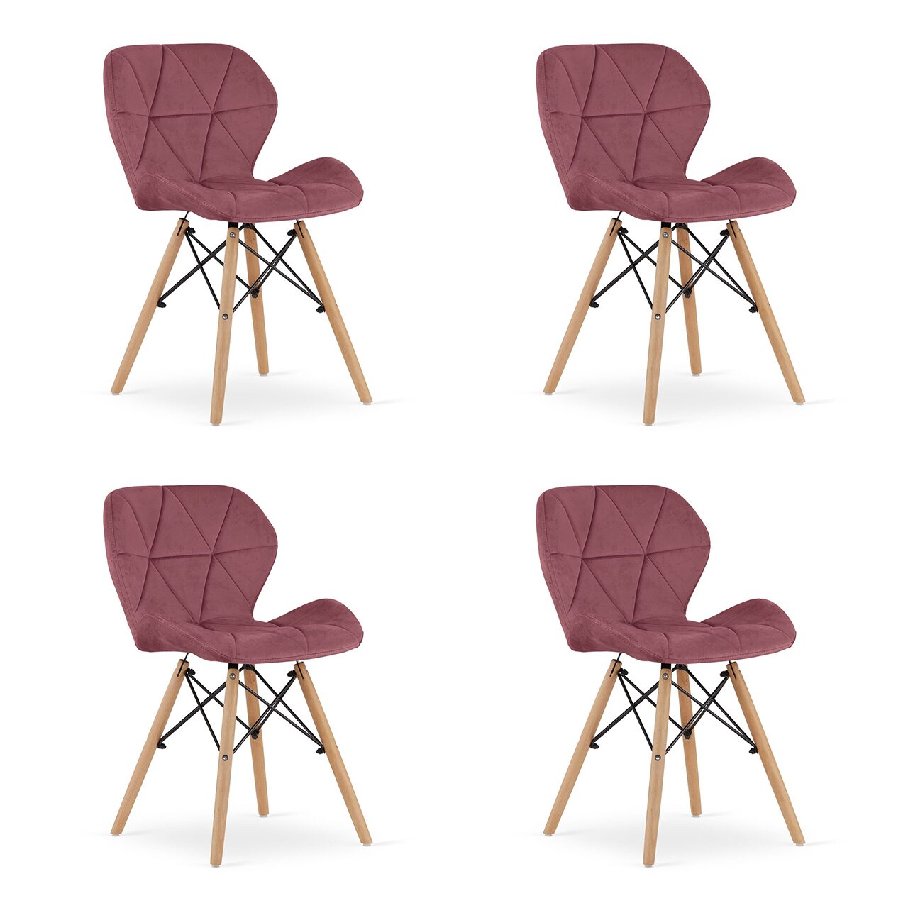 4db skandináv stílusú székkészlet, Artool, Lago, bársony, fa, sötét rózsaszín, 47x52x74 cm