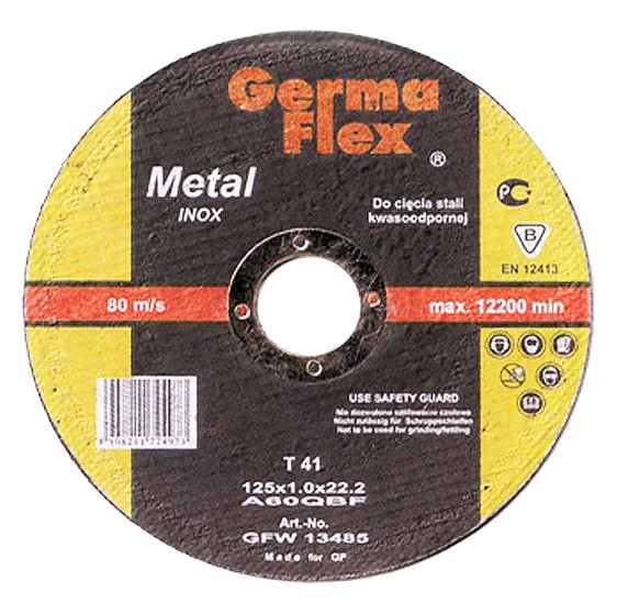 Rozsdamentes acél vágókorong, 230x1,9 mm Jellemzők: Korong átmérője: 230 mm Korongvastagság: 1,9 mm Maximális daráló sebesség: 12200 rot/min
