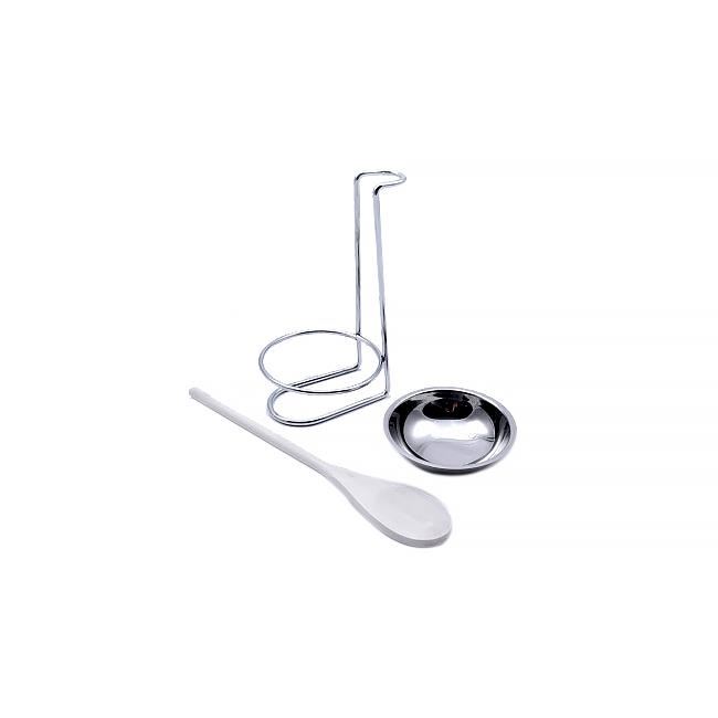 Rozsdamentes acél tartó fakanállal, Perfect Home Jellemzők: Anyag:  , rozsdamentes acél, fa Méretek: támasztó magasság: 17 cm, szélesség: 10 cm; fakanál hossza: 2 ...