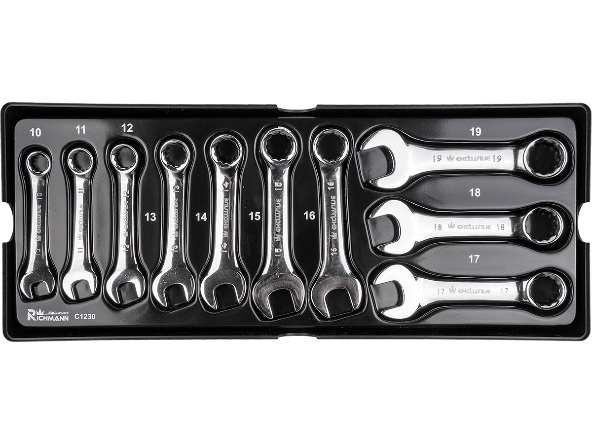 Rövid villáskulcs készlet, A TÍPUSÚ fiók (385x150 mm) mobil szekrényhez, 10-19 mm, 10 db, RICHMANN EXCLUSIVE