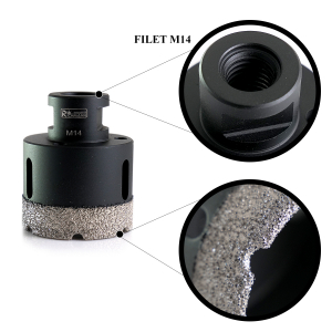 Az M14 vákuumforrasztott gyémánt magokkal TISZTA furatot kaphat és PONTOS törött élek nélkül.