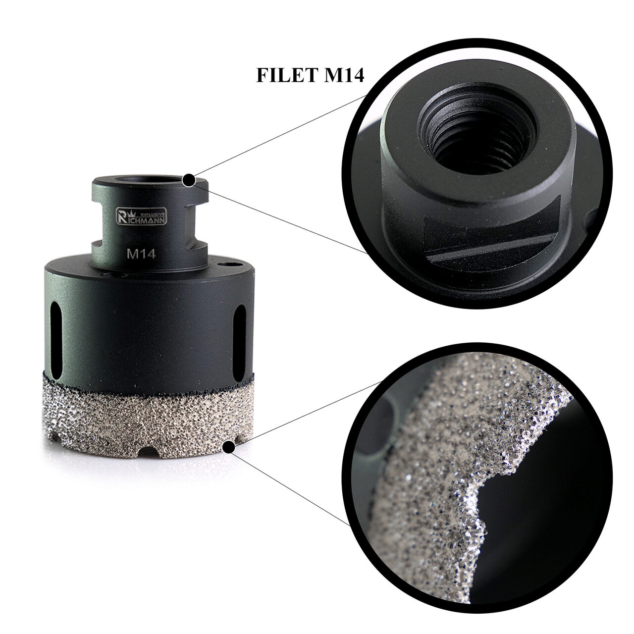8 db gyémánt mag készlet, vákuumforrasztott, M14, 6-68 mm, Richmann Exclusive