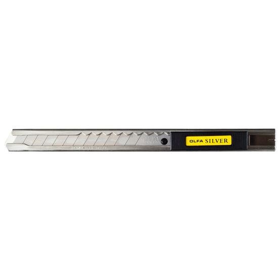 Az " néven ismert rozsdamentes acélból készült modell; Olfa Silver" ;. Tökéletesen használható nedves helyeken   nélkül; rozsdásodás veszélye (ablakpárkányok, tapéták stb.). Kényelmes fogantyújának köszönhetően népszerű a felhasználók körében. A végén van egy acél   bilincs és egy pengetörő szerkezet.