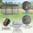Kerti/kereskedelmi pavilon, fémvázas, Oxford anyagú, állítható magasságú, burkolattal, ellensúlyokkal, kék, 2,53x2,53x2,68 m