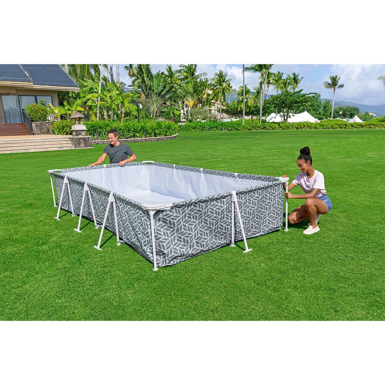 Fém szerkezetű úszómedence, kerek, szűrővel, pumpával, létrával, adagolóval, ponyvaburkolattal, fa modellel, barna, 549x122 cm, Bestway Power Steel