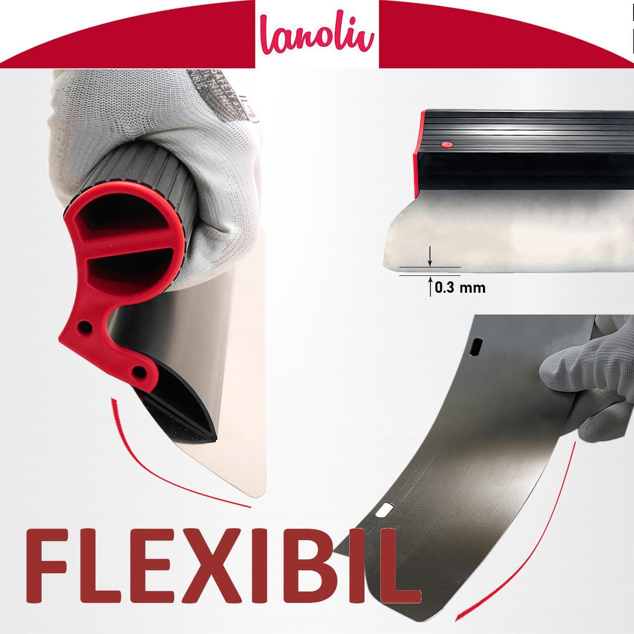3 db professzionális készlet, glett lehúzó rozsdamentes acél, 40, 60, 80 cm, adapter, hosszabbító nyél 1,2-2,2 m, tekercs, Lanoliv
