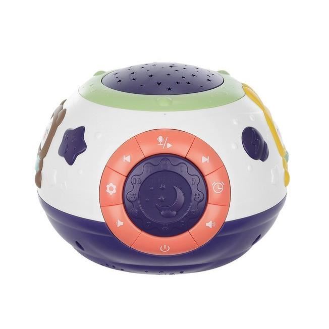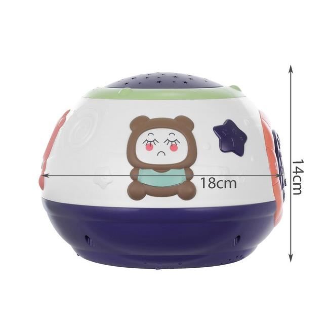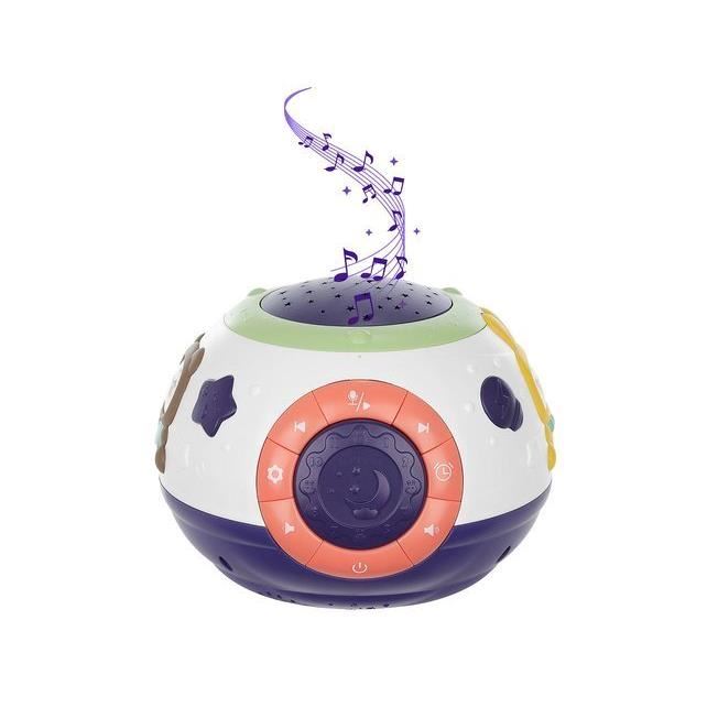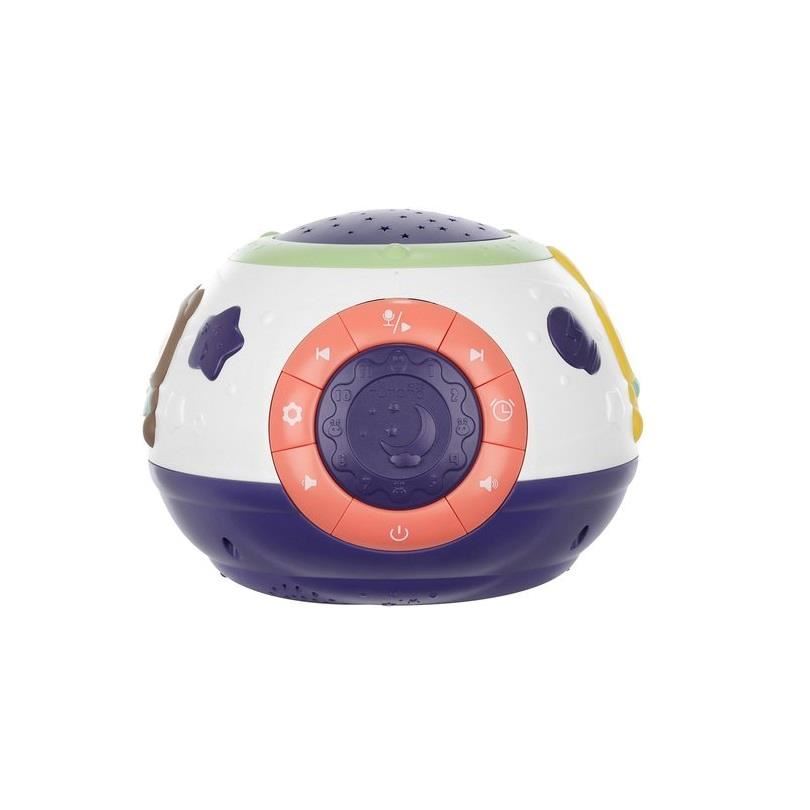 Lampa de noptiera cu proiector, muzicala, 4 moduri, 3xAA, 18x14 cm, Isotrade, mov si alb(00011212-IS)