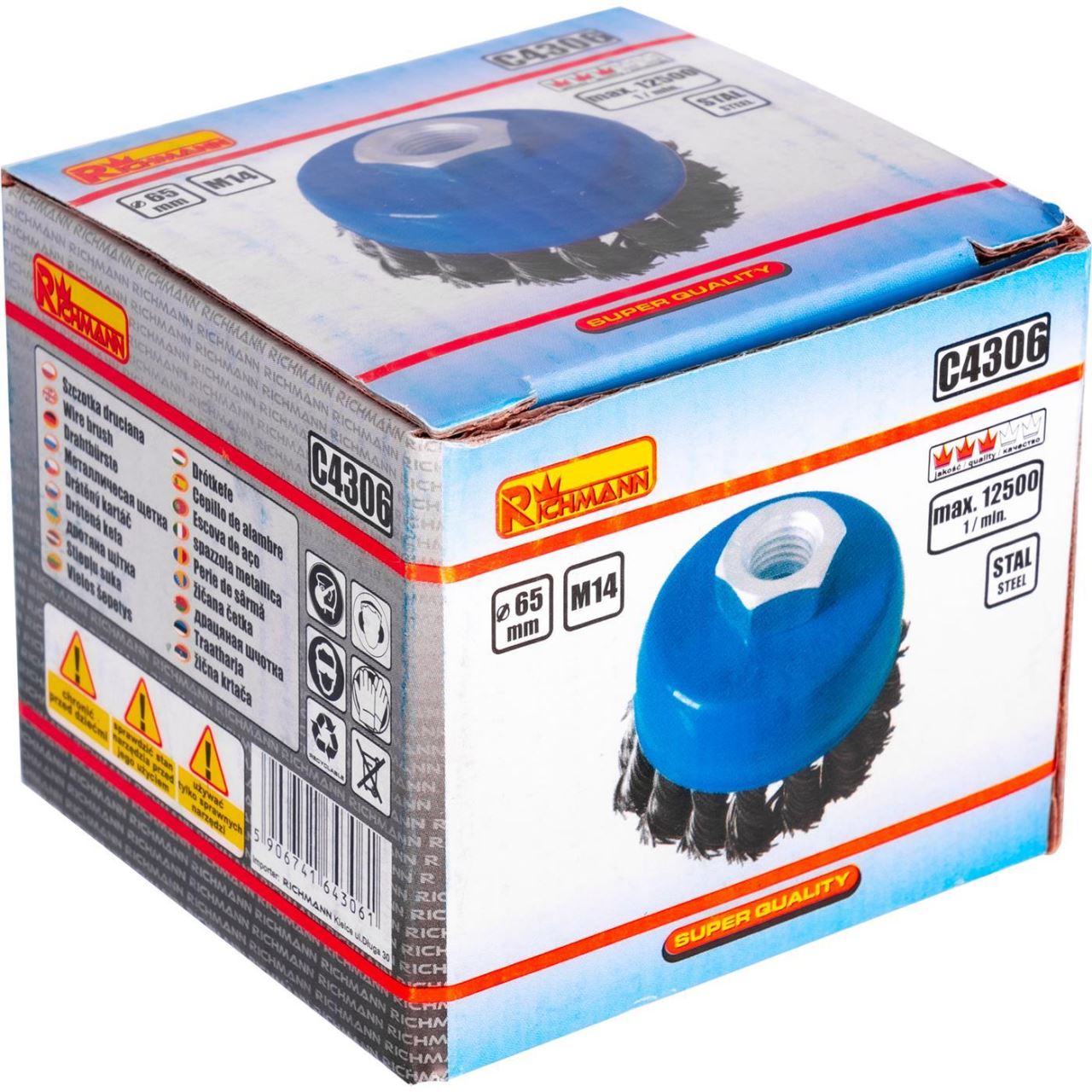 Acél drótkefe, csésze típusú, szálas, M14, 65 mm, Richmann