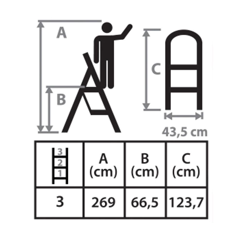 Acél létra, 3 lépcsős, max 150 kg, 0,66 m, Strend Pro
