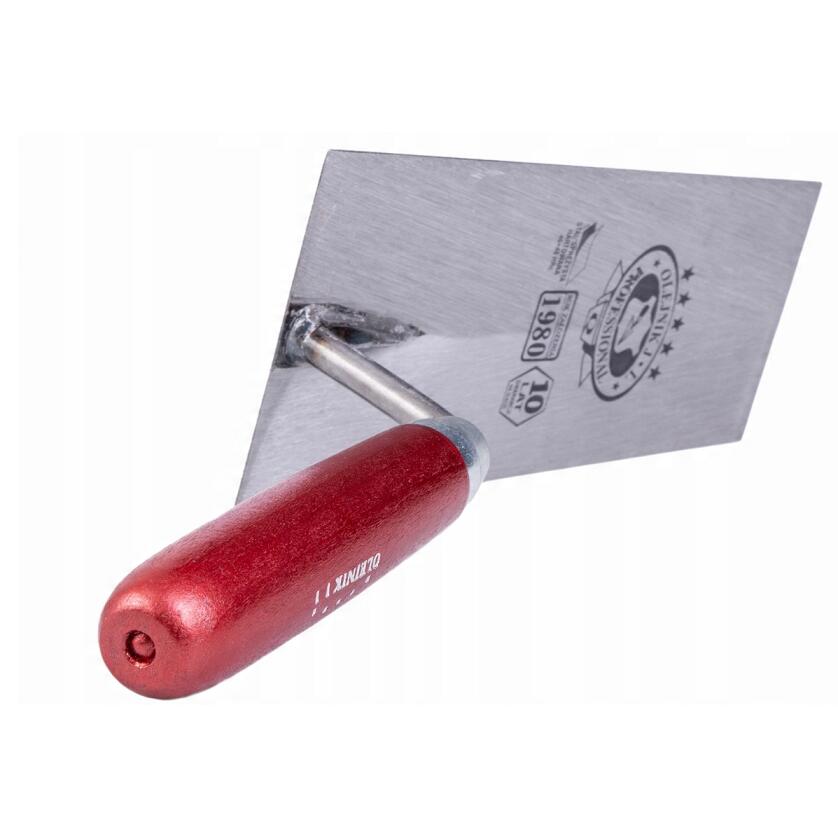 Acél simító, Olejnik, trapéz, keskeny, 180 mm, fa nyél, piros