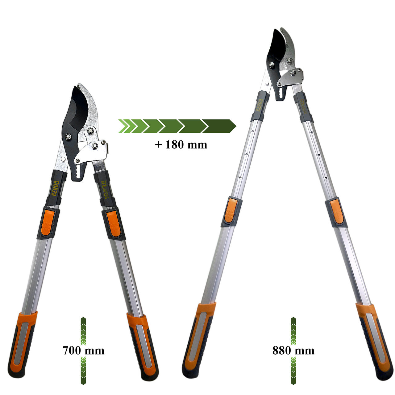 - A teleszkópikus aluminium fogantyúk megkönnyítik az olló manipulálását anélkül, hogy a kezek belefáradnának