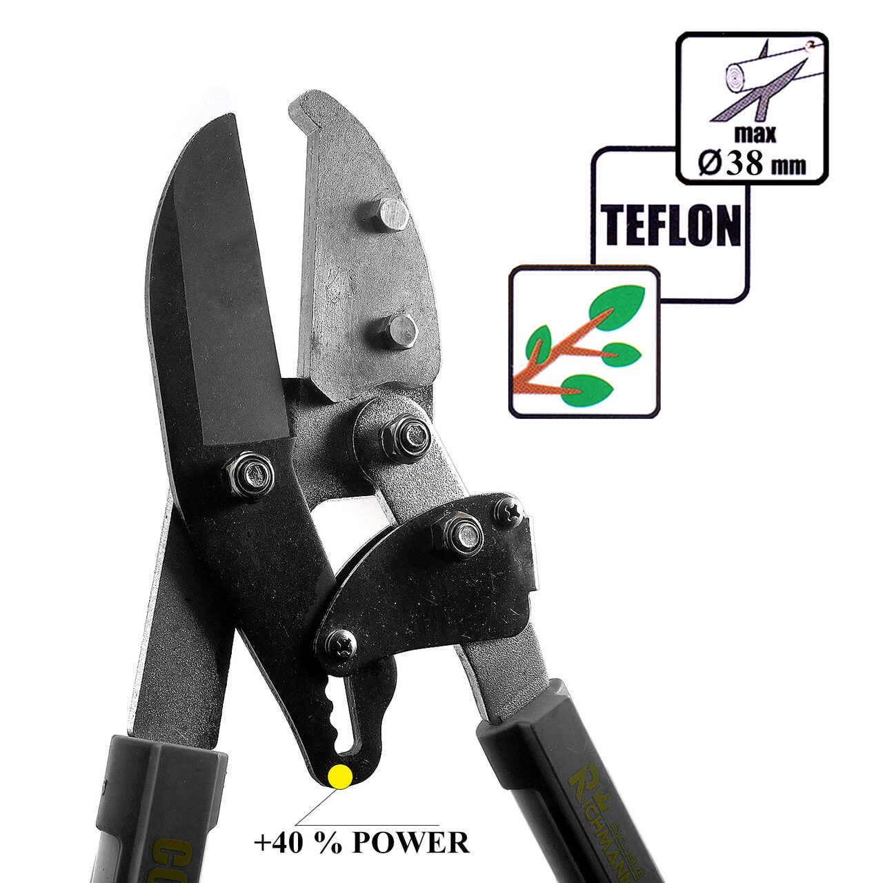 - Az ERŐS fogantyúk NAGY erőt engedélyeznek minden alkalommal amikor az ágak vágására kerül sor