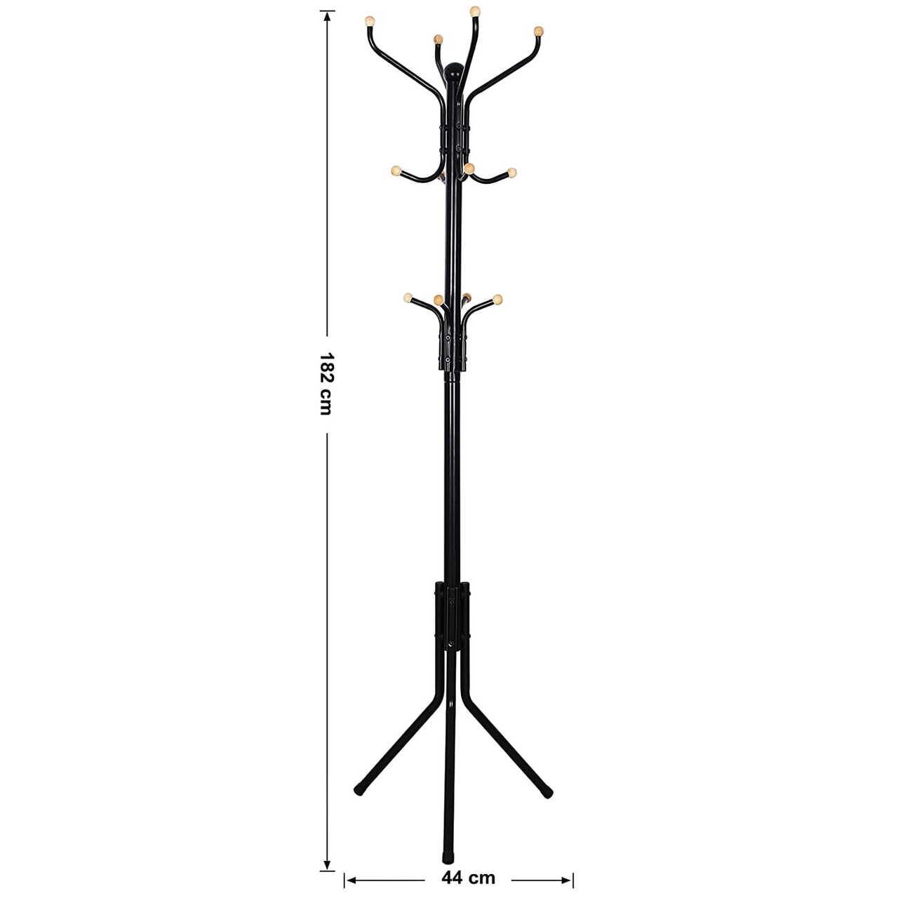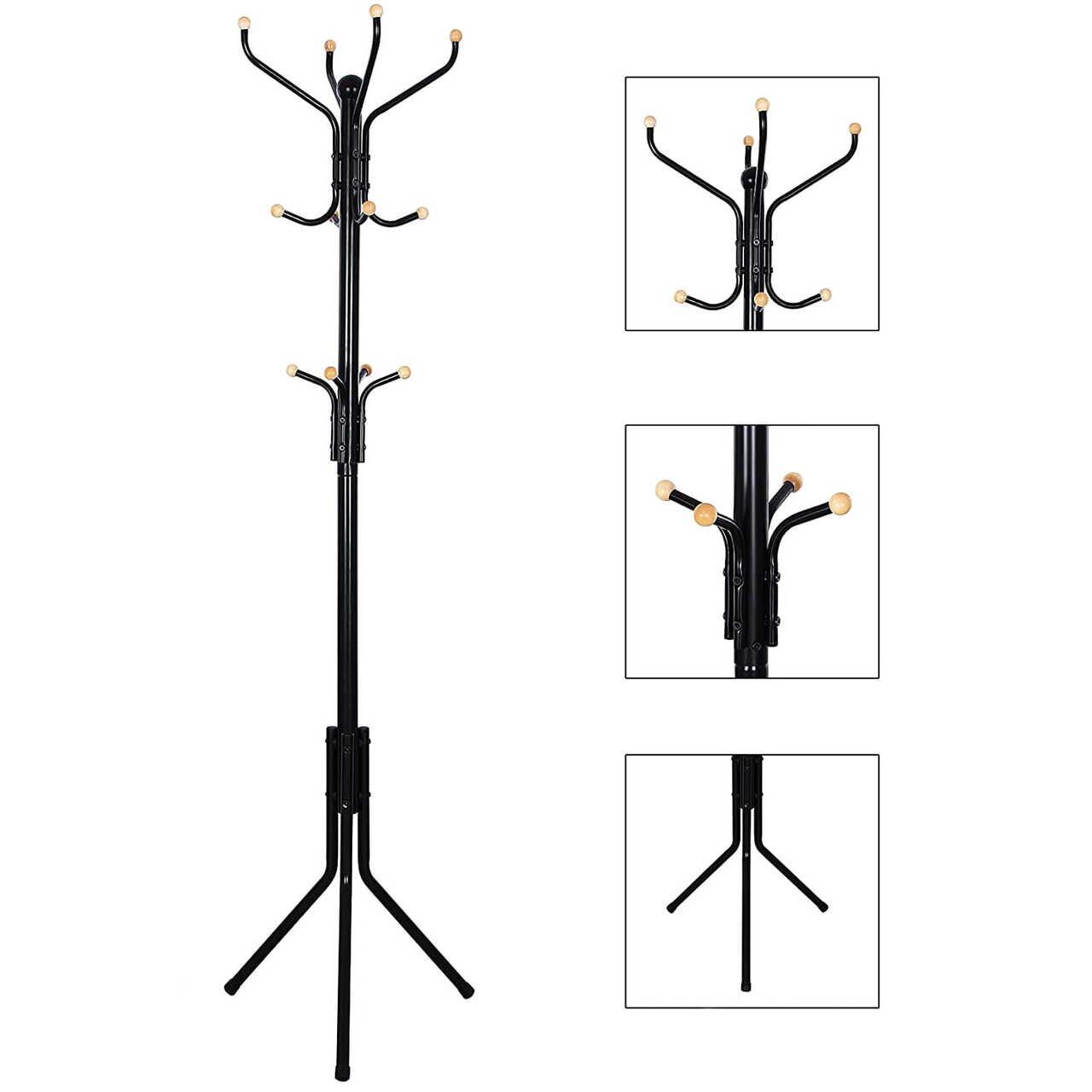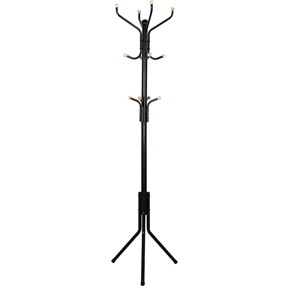- Ez a helytakarékos termék stabil állványtalppal rendelkezik, aminek köszönhetően biztosak lehetünk abban, hogy a termék nem dől meg a plusz terhelés mellett. Ezenkívül a termék 12 lekerekített kampóval van felszerelve kabátok, kabátok, kesztyűk vagy sálak és sapkák tárolására.