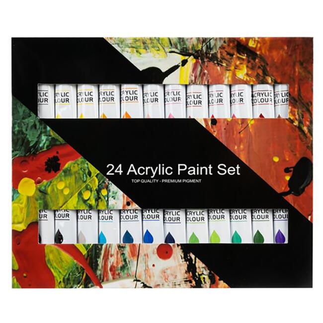 Akril színkészlet festéshez, 24 db, 12 ml, Maaleo