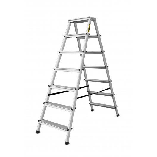 A kétoldali alumínium lépcső számos olyan felszereltséggel rendelkezik, amelyek hasznosnak bizonyulnak a mindennapi használat során, de akár kisebb felújítási és építési munkákhoz is, mind a háztartásokban, mind a szolgáltató cégeknél.