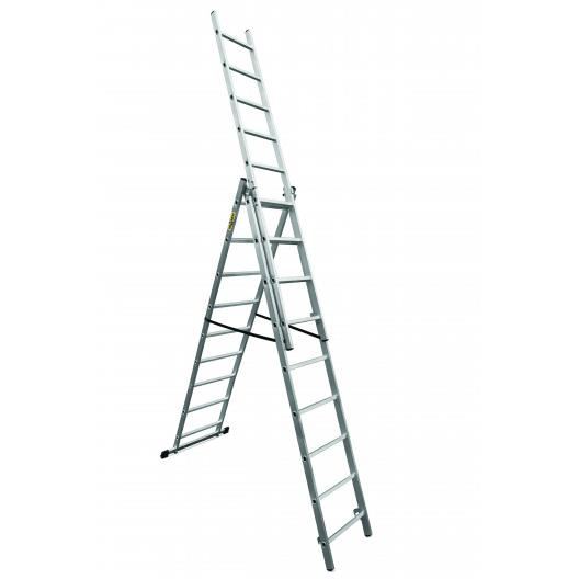 Alumínium létra, 3 részes, 9 lépcsős, Basic, Drabest Jellemzők: Anyag: alumínium Lépések száma: 9 Maximális támasztható súly: 150 kg Súly: 12 kg B2 Platform magasság ...