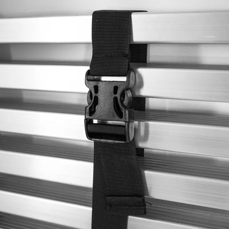 - Biztonsági övvel van felszerelve, amely megakadályozza a véletlen kioldást és automatikus reteszelő rendszerrel.