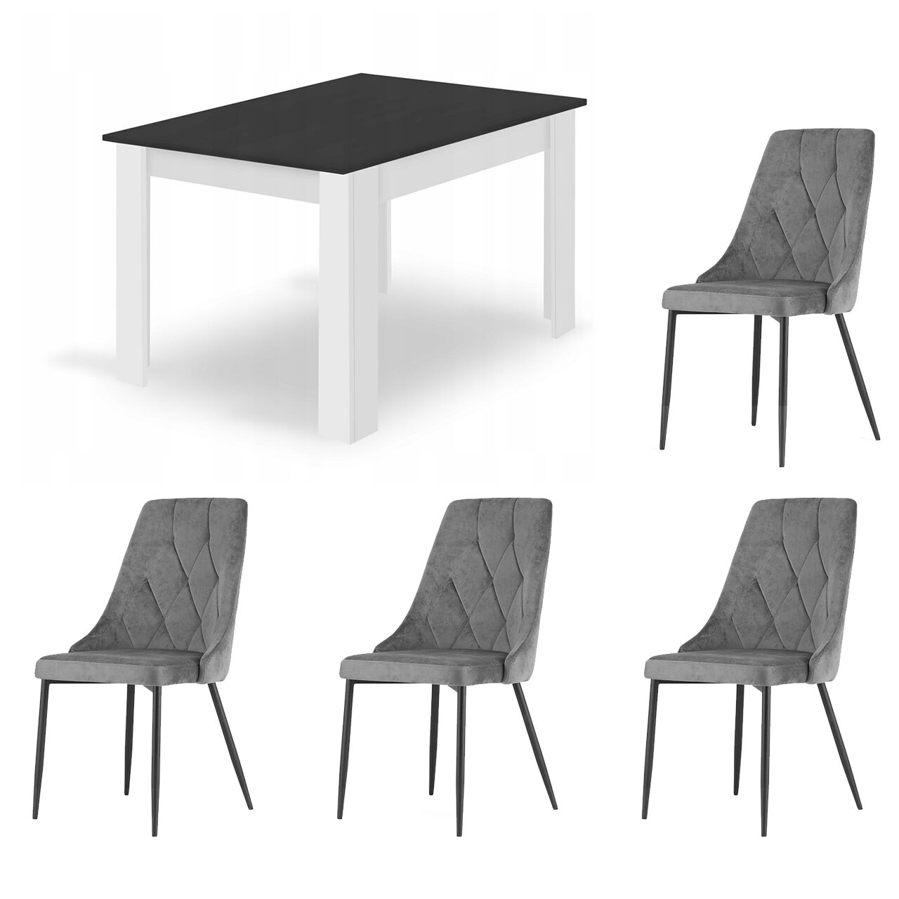 Asztal étkezőbe/nappaliba + 4 szék Imola, Artool, fa, fehér és fekete, 120x80x75 cm