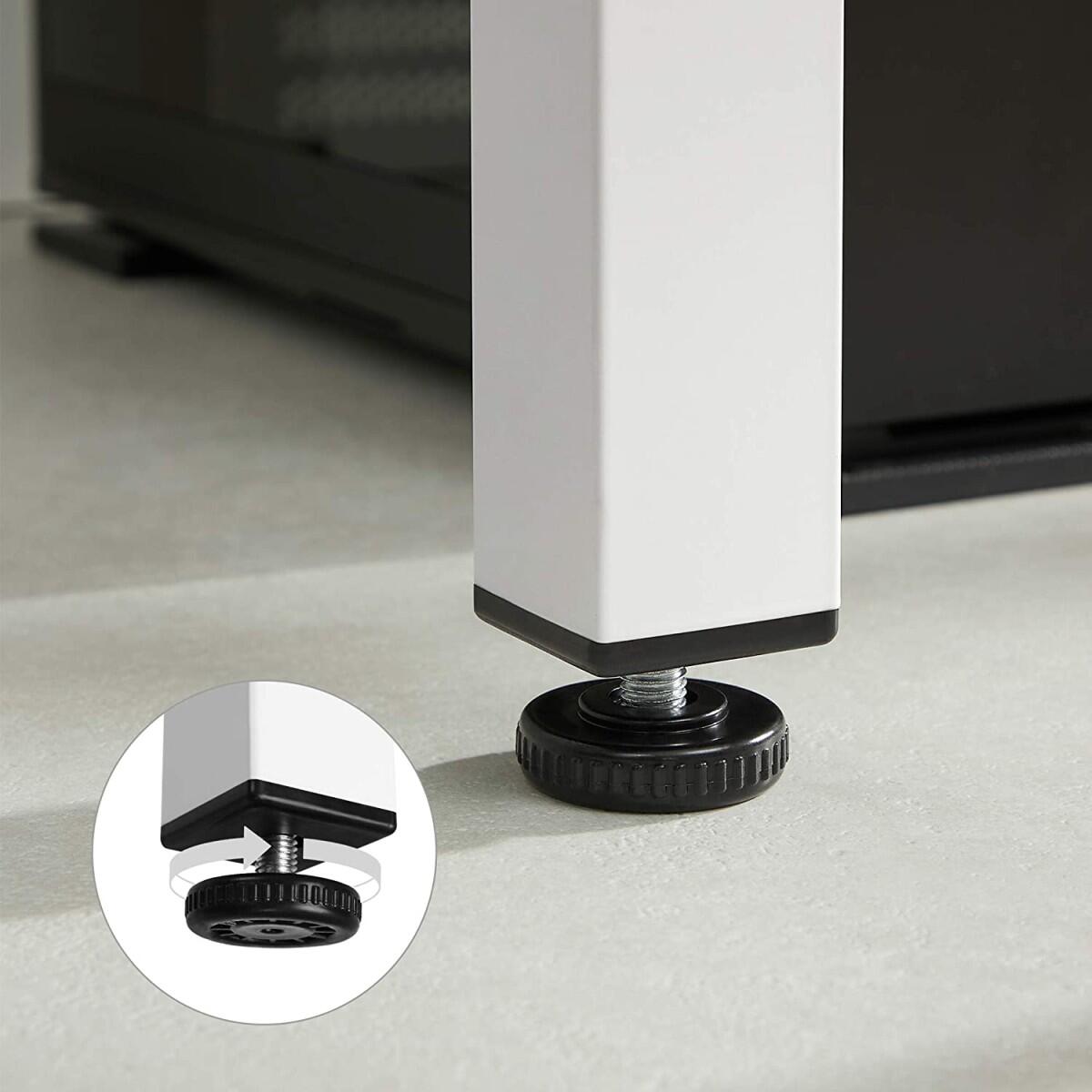 - A bútorok erős lábai tökéletes stabilitást biztosítanak, alsó végük pedig állítható, így az asztal egyenetlen felületen is vízszintbe állítható.