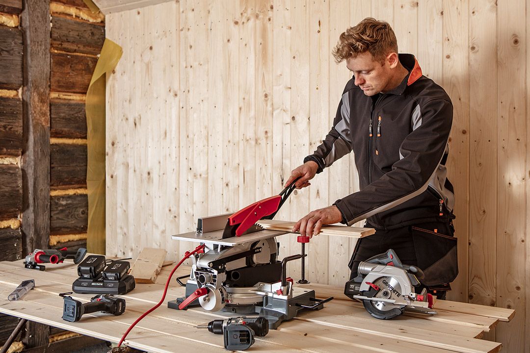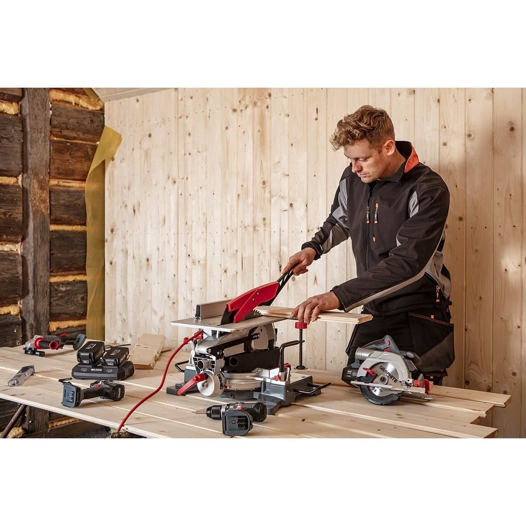 Ez egy &bdquo, 2 in 1” – ferde fűrészként vagy asztali fűrészként használható, amely lehetővé teszi mind a keresztirányú, mind a hosszanti vágásokat. Lehetőség van 0 és 45º közötti szögben vágni; mindkét síkban.
