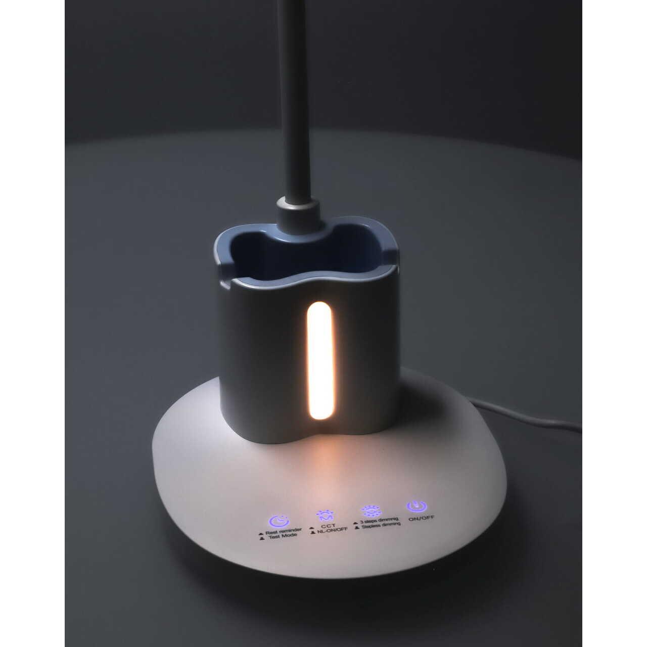 - Rugalmas karral van felszerelve, amely lehetővé teszi, hogy szabadon állítsa be a fény irányát az Ön igényei szerint. A tollak, ceruzák és egyéb irodai kiegészítők beépített tárolója segít abban, hogy irodája rendben legyen, és minden kéznél legyen. A lámpa alsó részén, a lámpa alján található.