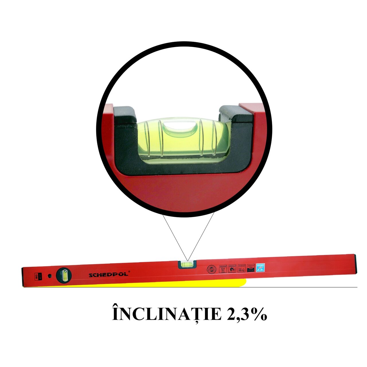 * Szerezzen PONTOS mérést 0,024 ° = 0,4 mm/m   szint használatával; SCHEDPOL BASIC dőléssel.