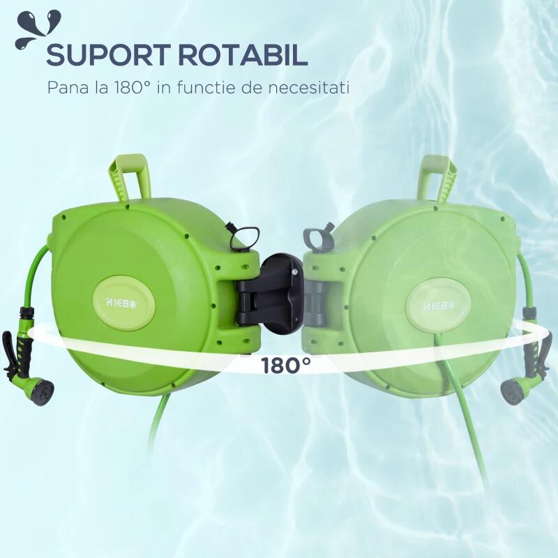 Behúzható/automatikus, hordozható falra szerelhető 1/2"-os, 9 utas, 20 m-es kerti tömlő orsó/orsó