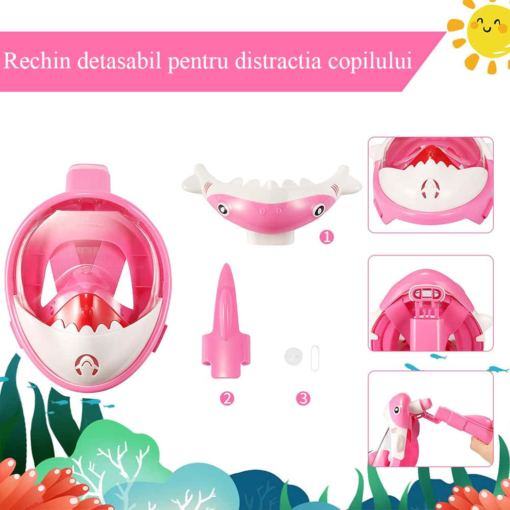 Cápa snorkeling maszk gyerekeknek modell cápa, rózsaszín