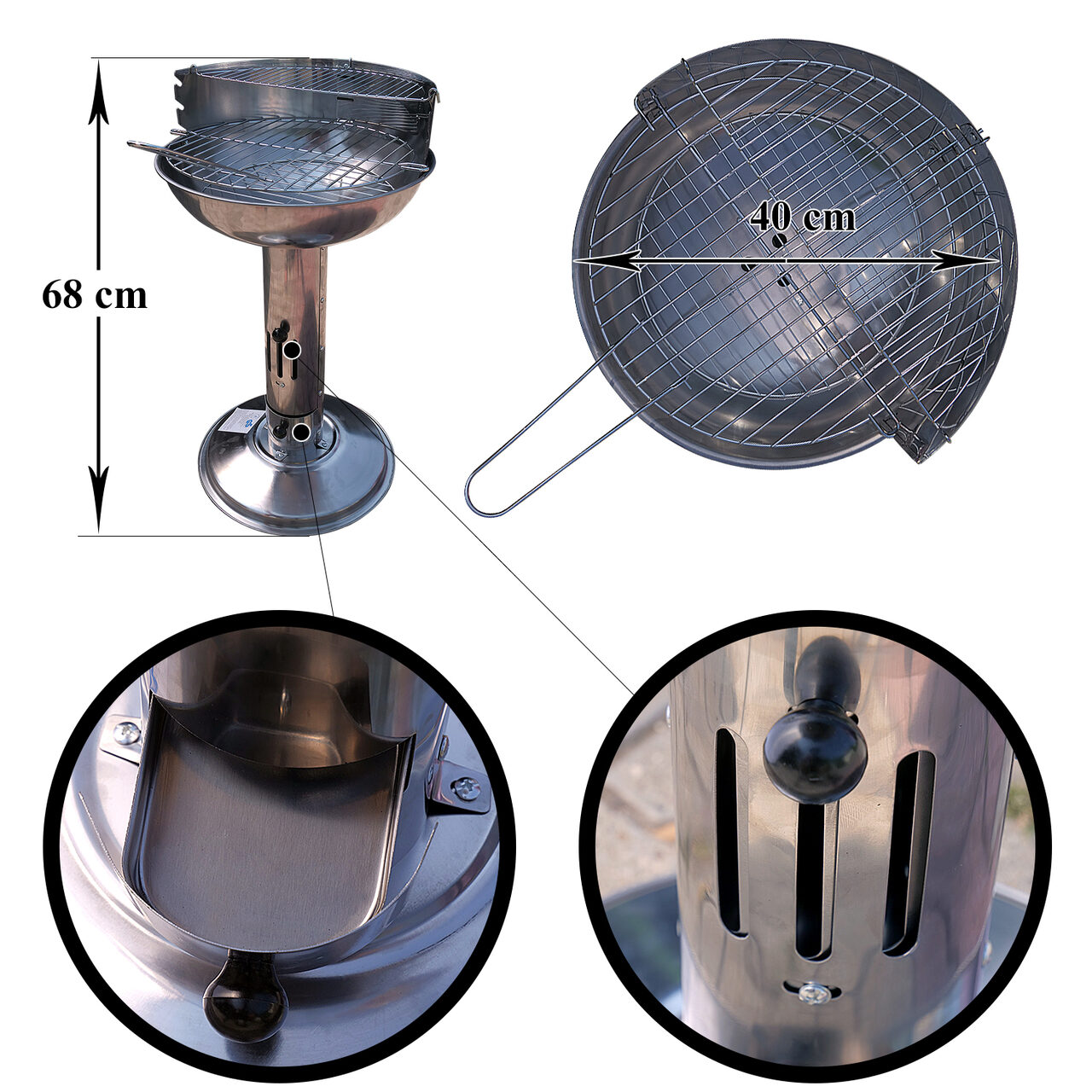 Capri kerti rozsdamentes grillező szénnel 40x68 cm