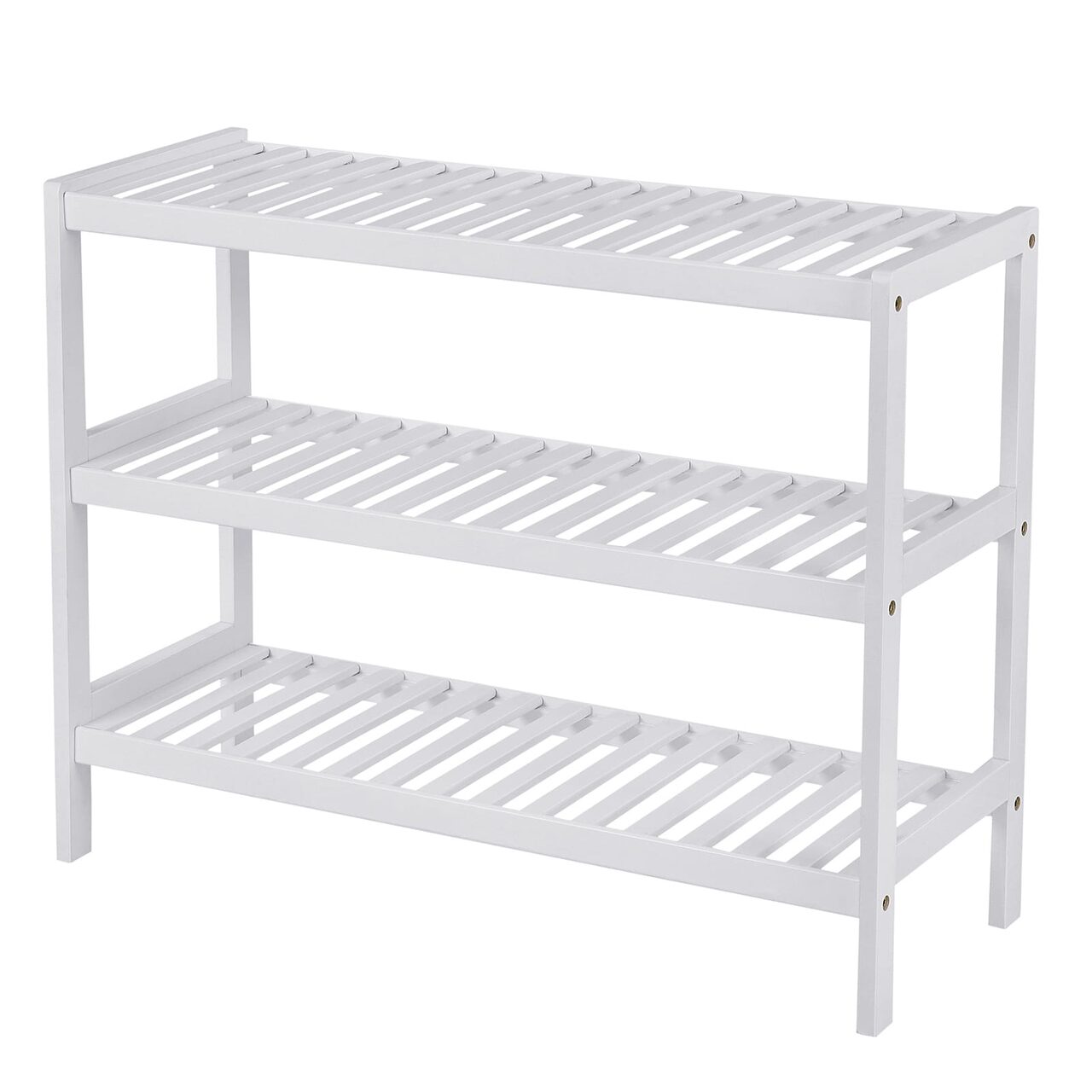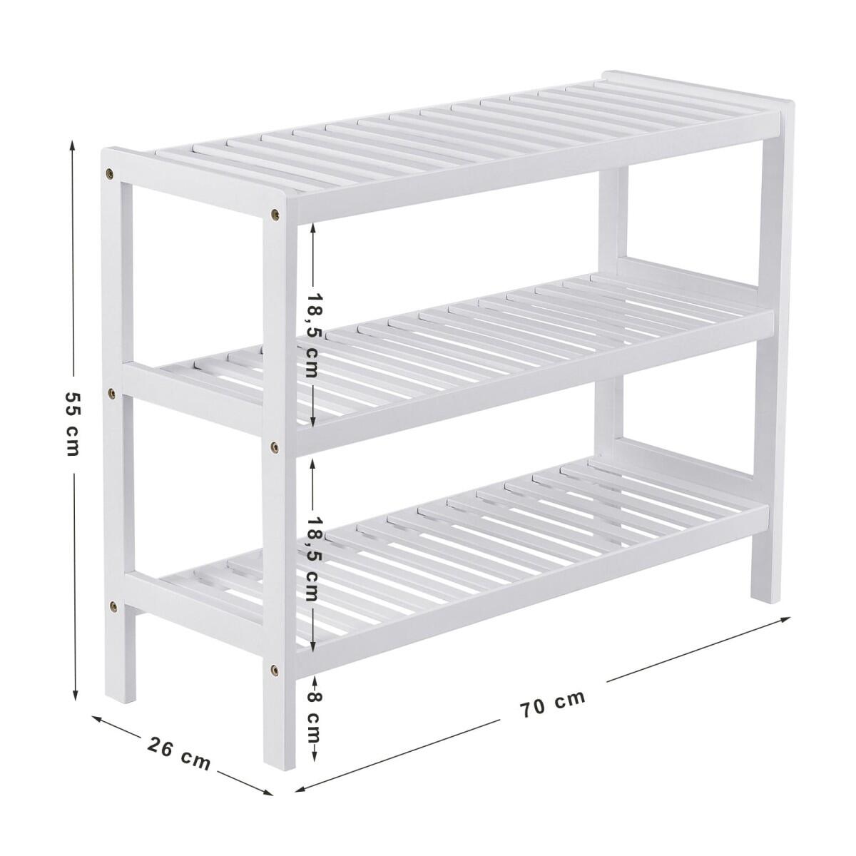 Cipőtároló állvány, Artool, 3 polc, bambuszfa, fehér, 70x26x55 cm