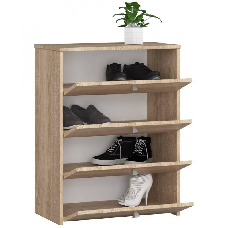 Cipőtároló szekrény, cipőtartó, laminált lemez, 4 fiók, tölgy, 60x33x80 cm