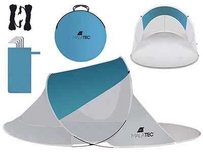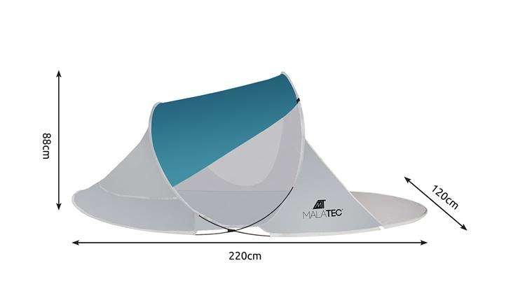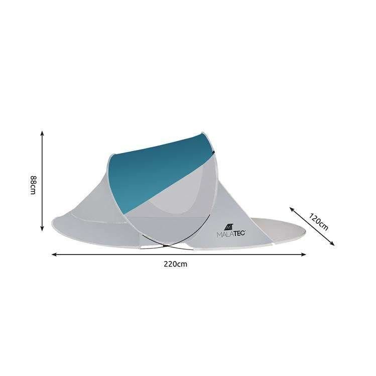 Strandsátor, UV védelemmel, huzattal, kék-fehér, 120x220x88 cm, Malatec