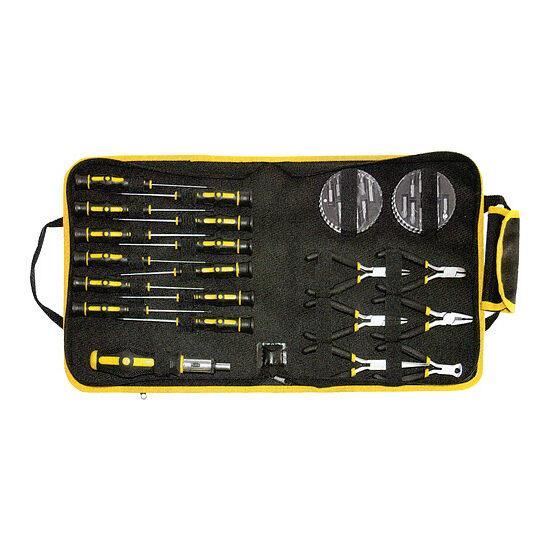 A készlet  -t, precíziós csavarhúzókat, biteket és mini fogókat tartalmaz.