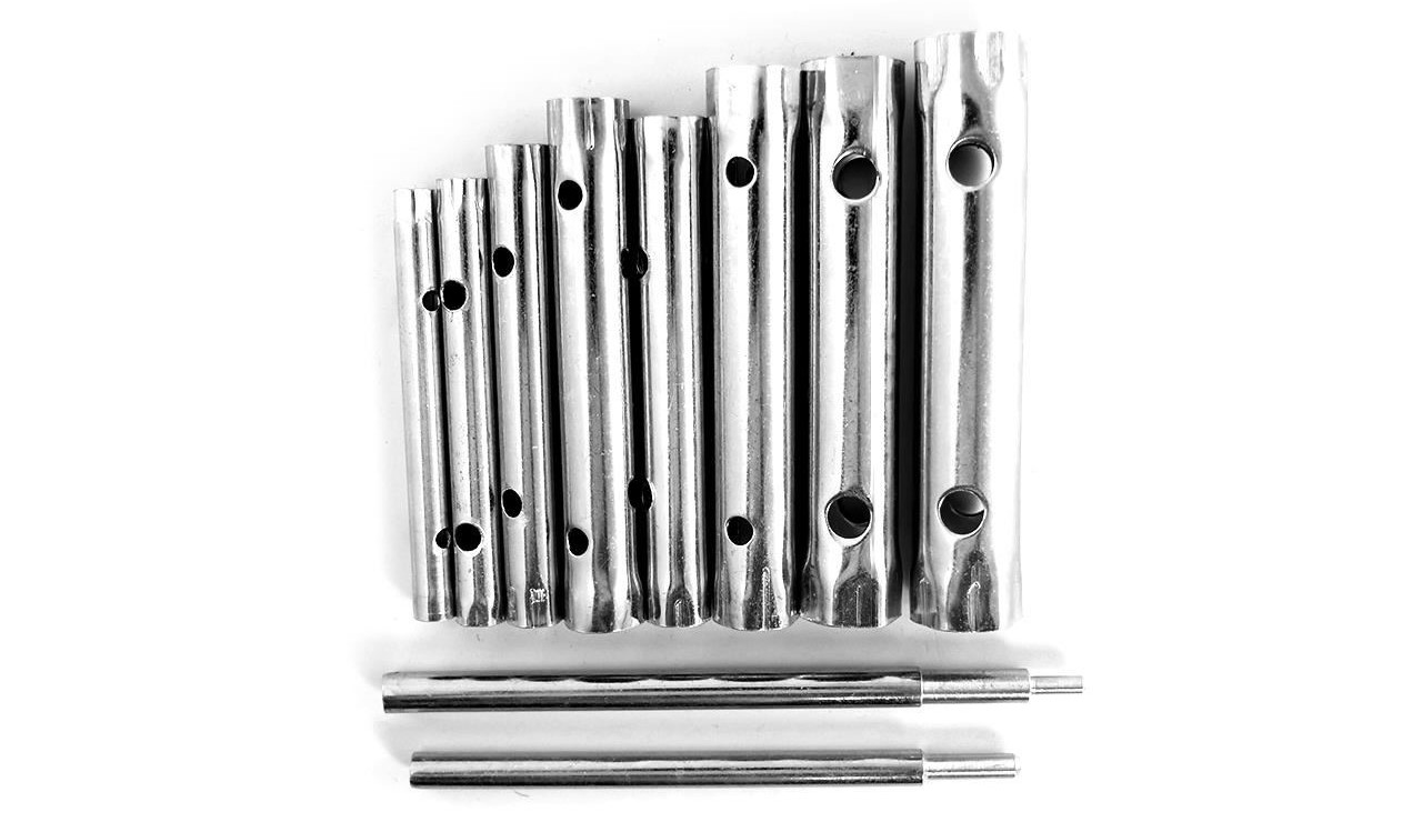 - 8 kulcs: 6-7 mm, 8-9 mm, 10-11 mm, 12-13 mm, 14-15 mm, 16-17 mm, 18-19 mm, 20-22 mm.
