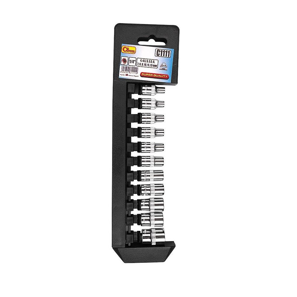 - 11 db hatszögletű foglalat készlete 1/4" mérettartományban: 4-13 mm