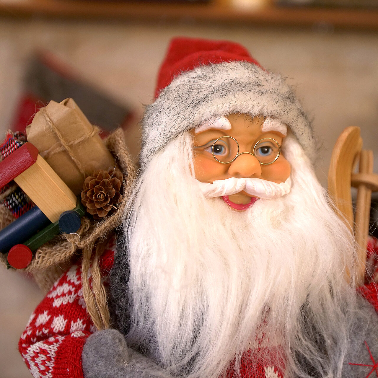 Dekoráció, Mikulás síléccel, 45 cm
