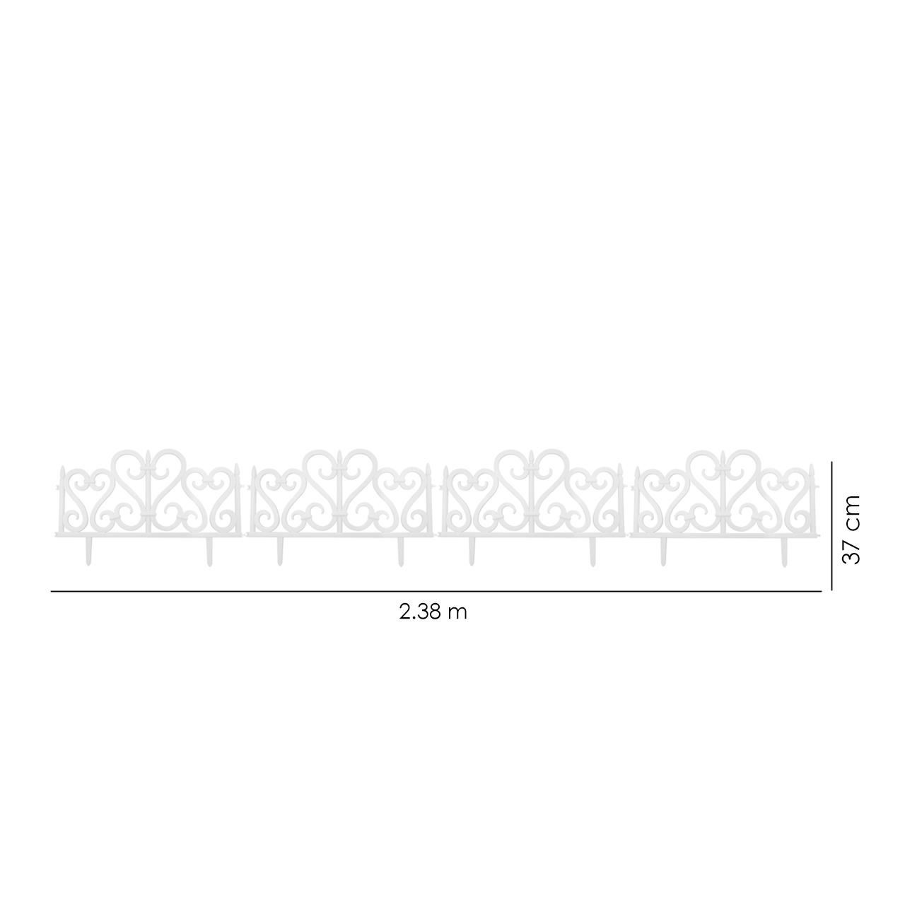 - A készlet tartalma: 4 db 59,5 cm hosszú és 37 cm magas műanyag kerítés, amely 2,38 m teljes hosszú kerítés beépítését teszi lehetővé.