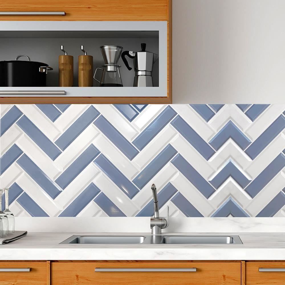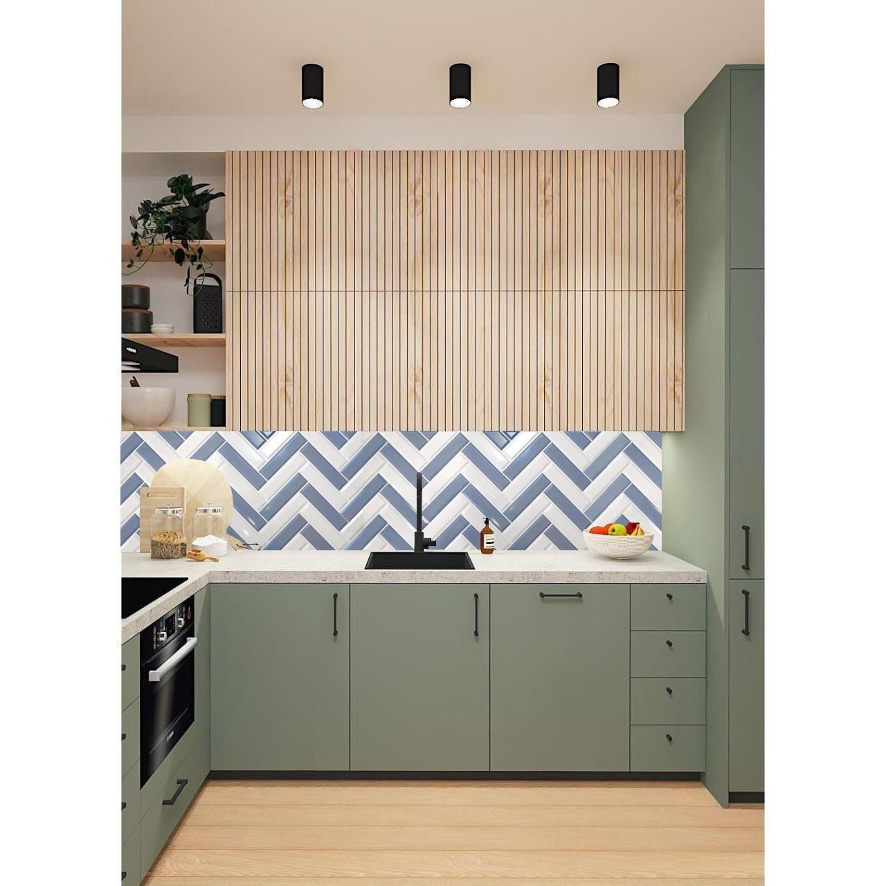 Dekoratív panel, PVC, 3D cikk-cakk minta, fehér-kék, 96x48,5cm
