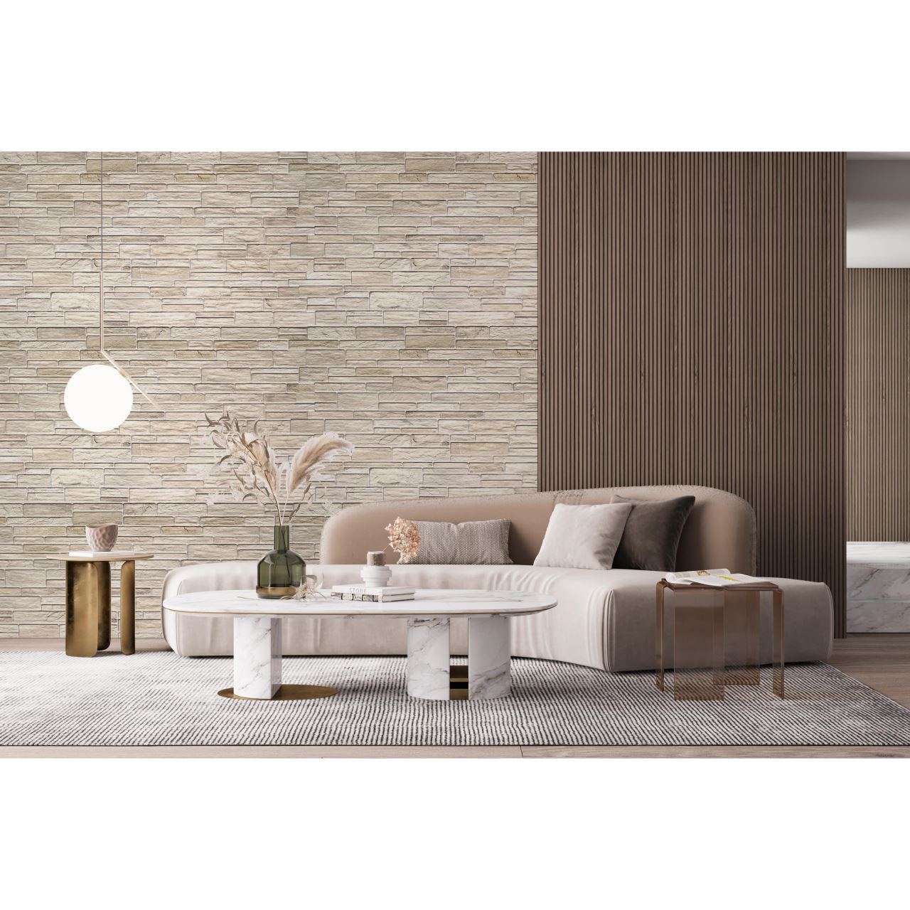 Dekoratív panel, PVC, 3D kőmodell, krémszínű árnyalatok, 96x48,5 cm