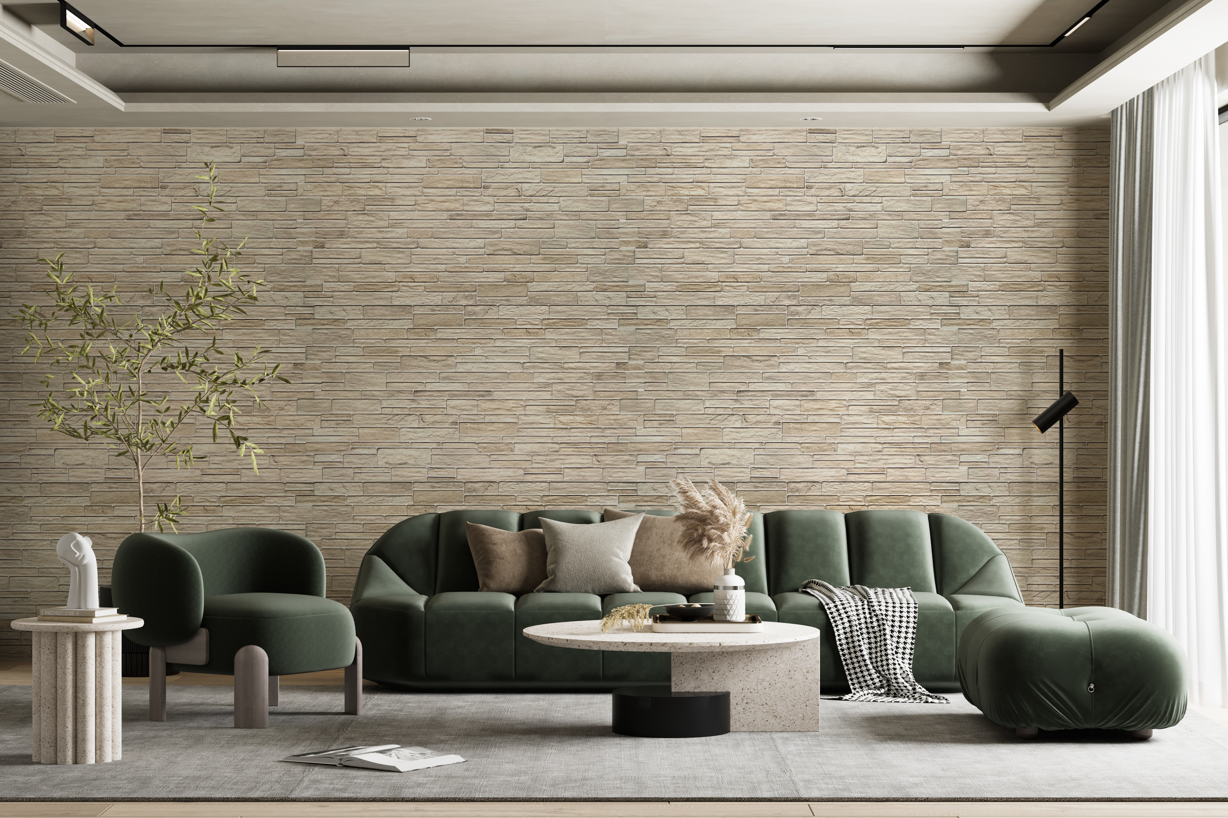 Dekoratív panel, PVC, 3D kőmodell, krémszínű árnyalatok, 96x48,5 cm