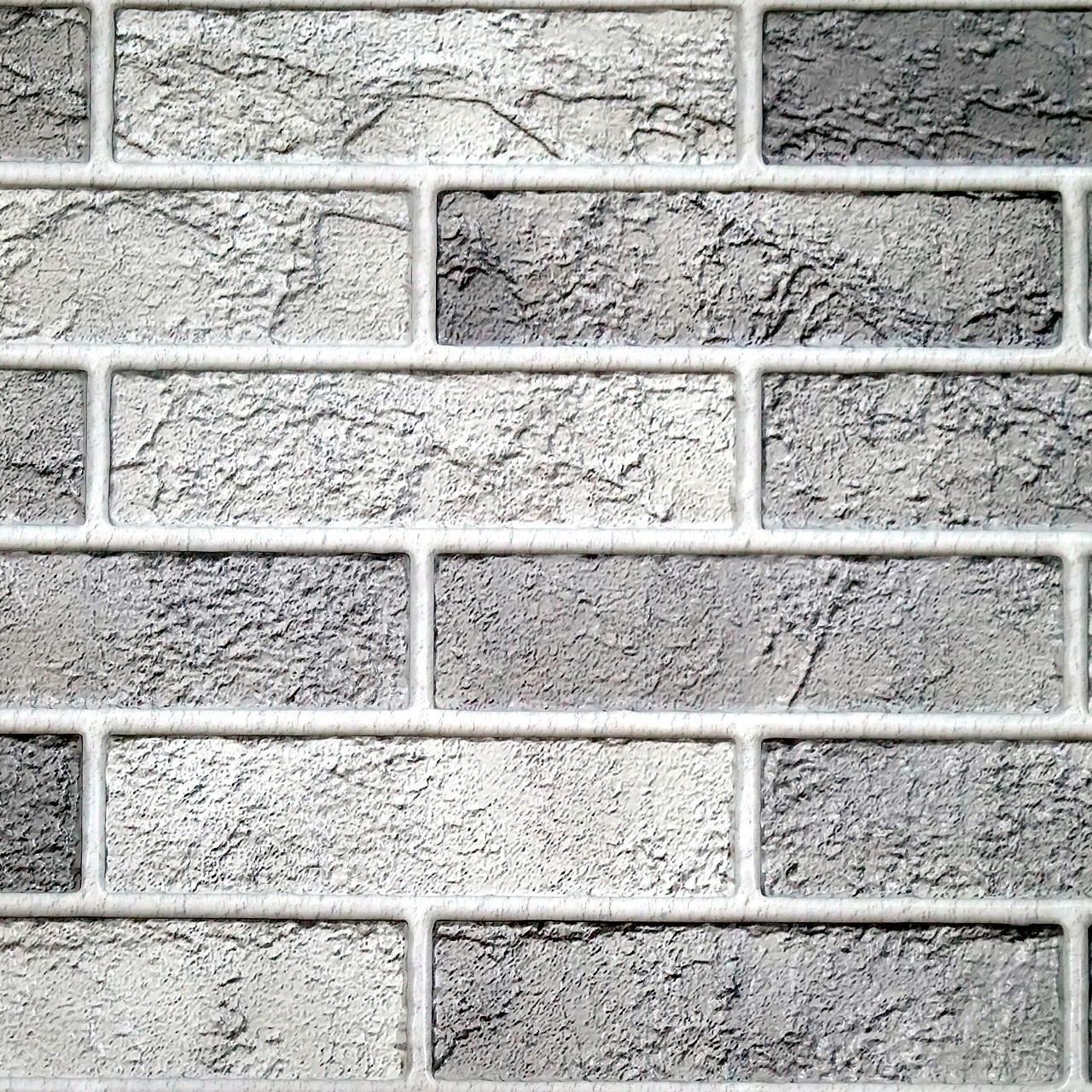 Dekoratív panel, PVC, 3D téglamodell, világosszürke árnyalatok, 96x48,5cm