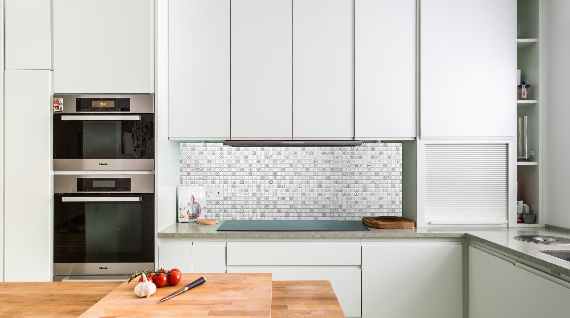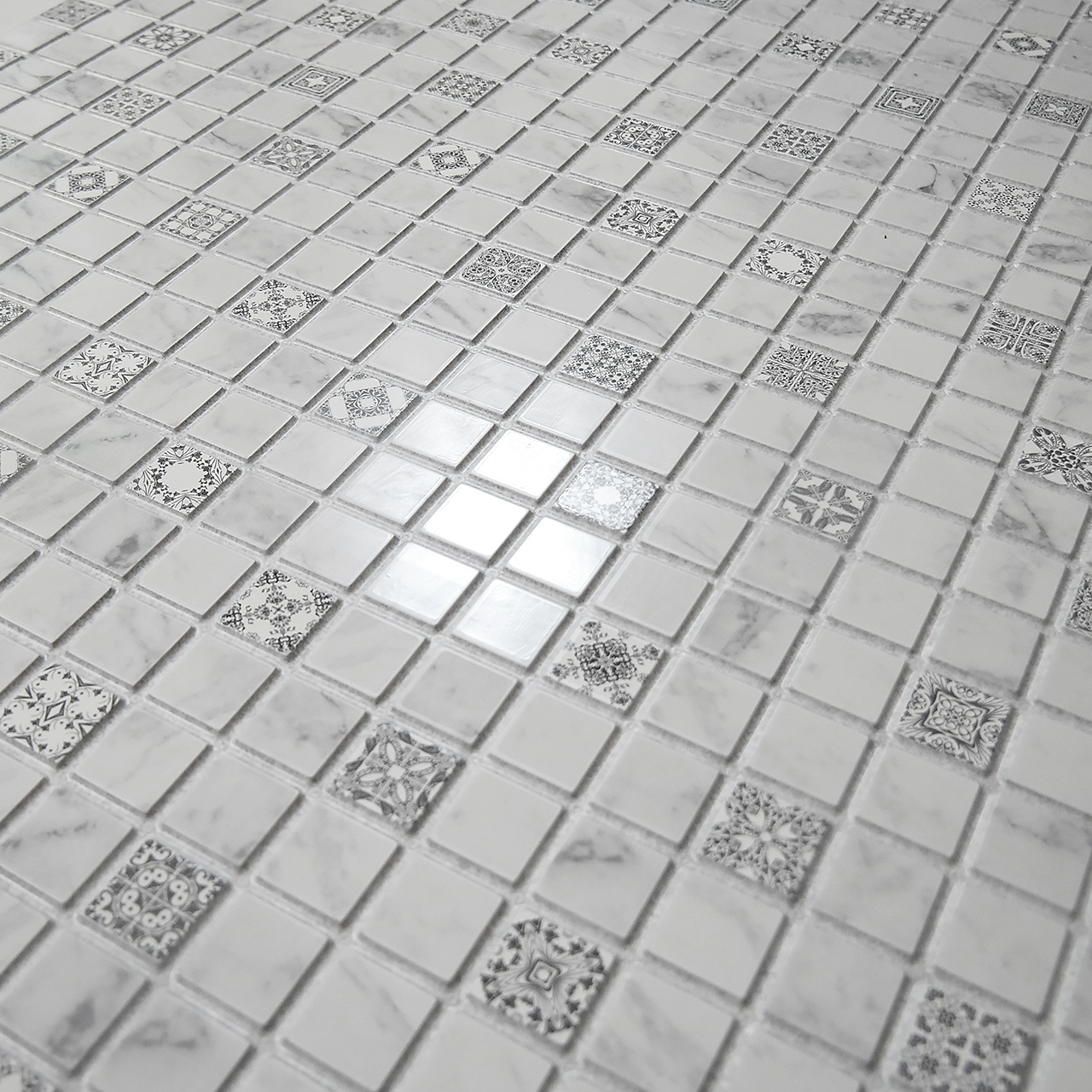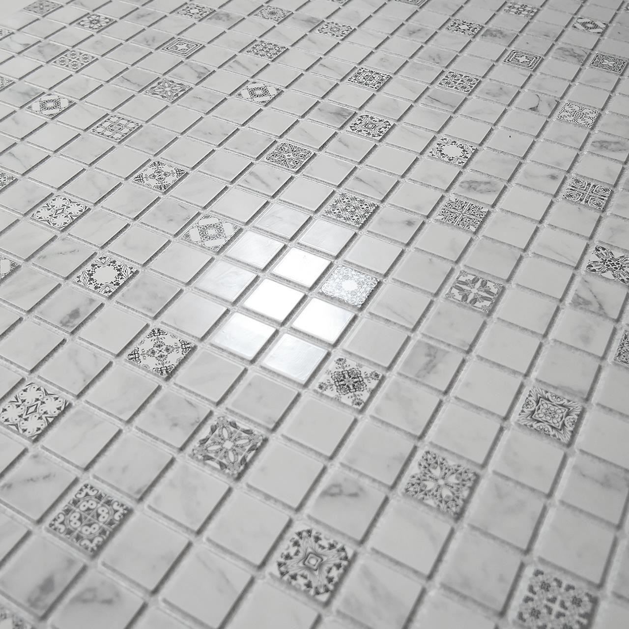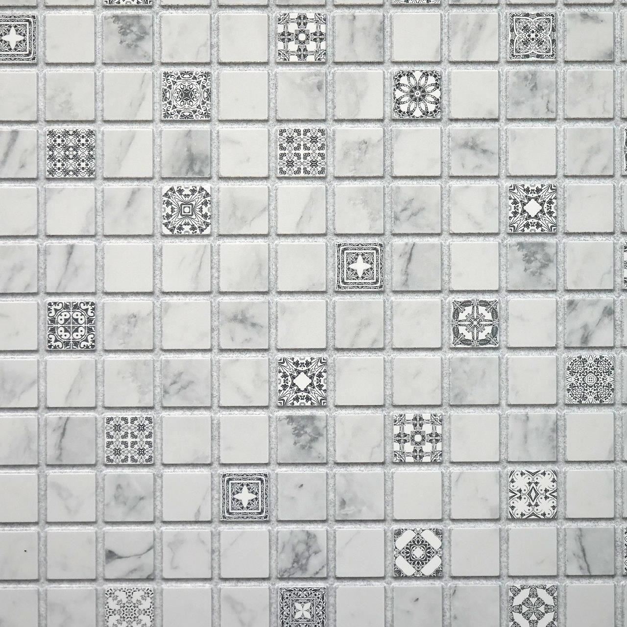Dekoratív panel, PVC, mozaik minta, szürke és fehér árnyalatok, 96x48,5 cm